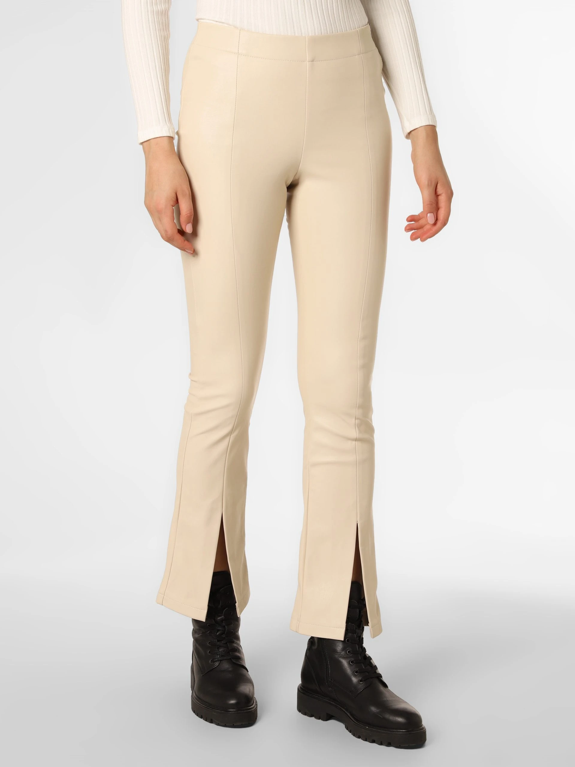 Die frontalen Saumschlitze verleihen der Kunstlederhose von Aygill’s eine gewisse Coolness.