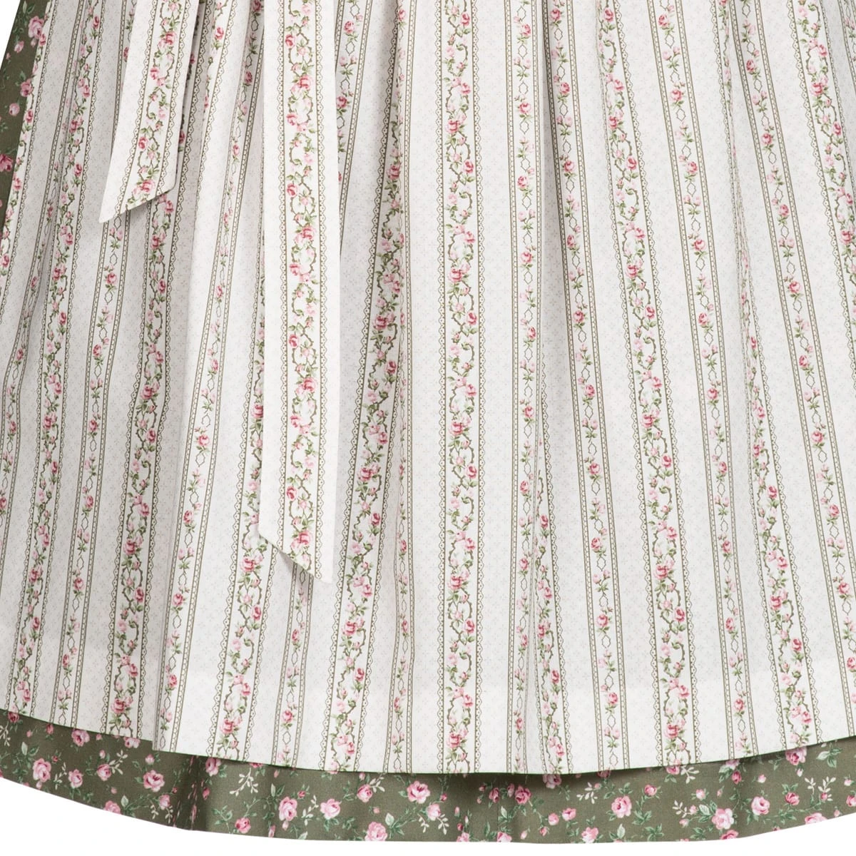 Hinweis: Die Schlaufenbänder, mit denen die Dirndlschürze am Dirndl gehalten wird dienen lediglich der Aufbewahrung und dem Transport der Schürze. Sie können diese abtrennen und sollte die Schürze ohne deren Verwendung binden. So sind Sie mit der Dirndlschürze in der Höhe flexibel.