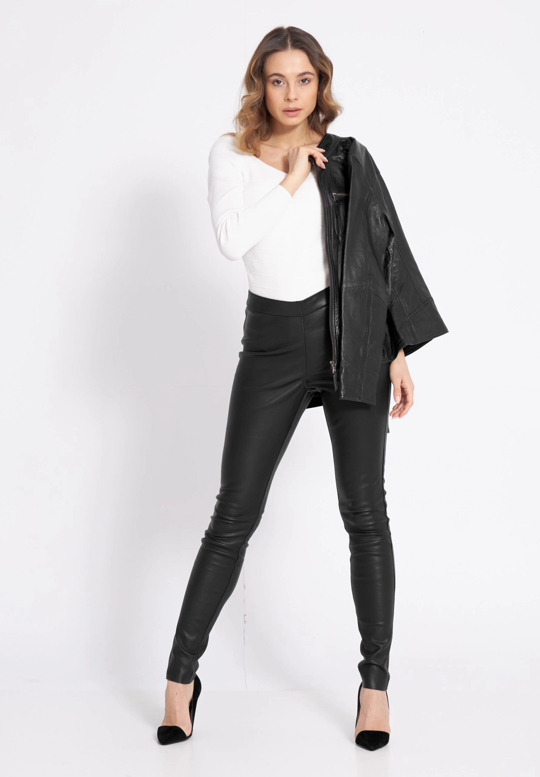 Diese wunderschönen Ledergamaschen sind aus superweichem, Lam Stretch Leder und sitzen eng an Körper und Beinen. Die Hose hat einen Gummizug in der Taille und einen Reißverschluss an der Seite. Die Hose ist enganliegend und sehr angenehm zu tragen und pas