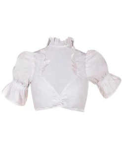 Weiße Dirndlbluse mit Rüschen an Nacken und Dekolleté