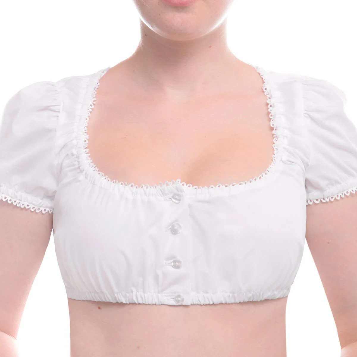 – Zu Ihrem Dirndl suchen Sie eine Dirndlbluse in weiß, dann sollten Sie auch bedenken, ob Sie kurzarm Dirndlbluse möchten, eine Halbarm-Dirndbluse oder Langarm-Dirndlbluse. Es gibt Dirndblusen weiß mit Spitze, leicht transparent in reinweiß.