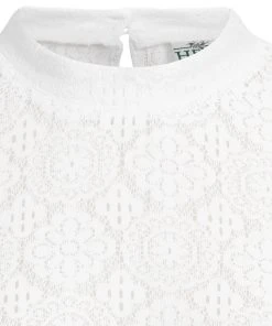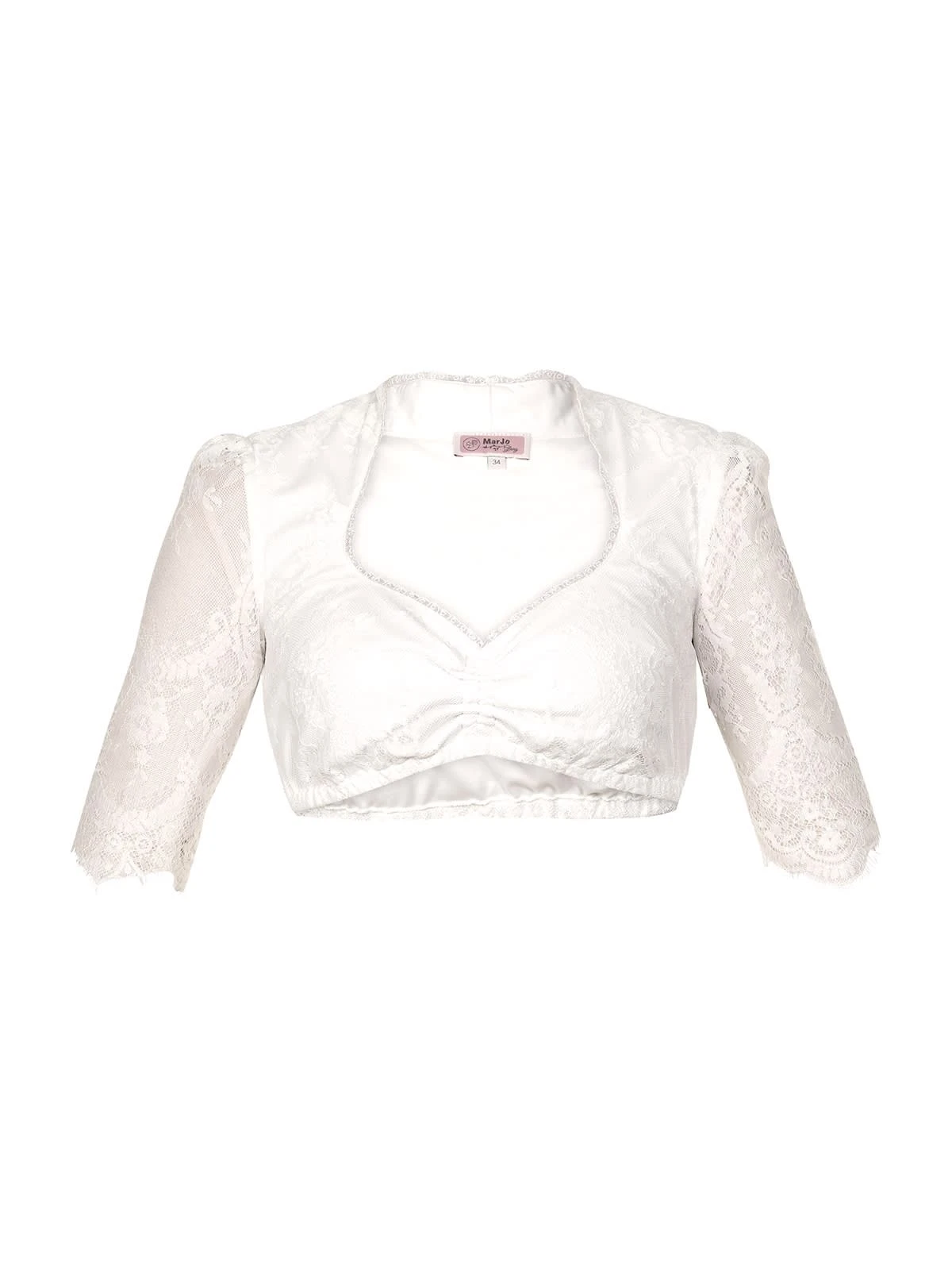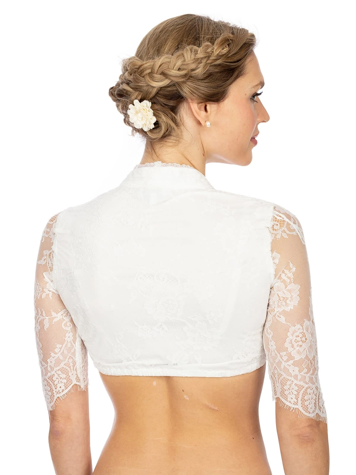 Romantische Dirndlbluse NIA-CHRISTINA in Offwhite. Der tiefe Ausschnitt der romantischen Dirndlbluse NIA-CHRISTINA setzt das weibliche Dekolleté besonders schön in Szene. Er ist mit einer kleinen Spitzenborte verziert und reicht im Nacken weit nach oben, sodass der Eindruck eines eleganten Stehkragens entsteht. Die Ärmel der Trachtenbluse reichen bis zum Ellenbogen und sind aus zarter Spitze gearbeitet, der Rückenbereich ist blickdicht. Diese Damenbluse in elegantem Offwhite ist ein toller Kombinationspartner zum festlichen Dirndl.•Diese Dirndlbluse fällt größengerecht aus. •Marjo •Trachtenmode •Handwäsche •100% Nylon