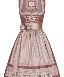 Ein hübsches Midi Dirndl Naden in Mauve von Marjo Trachten. Dieses Dirndl aus der Glow Collection ziert sich mit einem Punktemuster. Der Kragen und Ausschnitt wurden mit verschiedenen, aufwendigen Zierborten verziert. Zudem wurden zwei Schleifen angebracht. Die Schnürung mit Satinband zeigt sich auf der Vorderseite, dahinter befindet sich der Reißverschluss, der einen hübschen Anhänger besitzt. Die hübsche Schürze besitzt ebenfalls drei Schleifen und am Saumabschluss eine Borte aus Spitze. Somit harmoniert die Schürze perfekt zum Kleid. Der Trachtenrock misst eine Länge von 58cm.