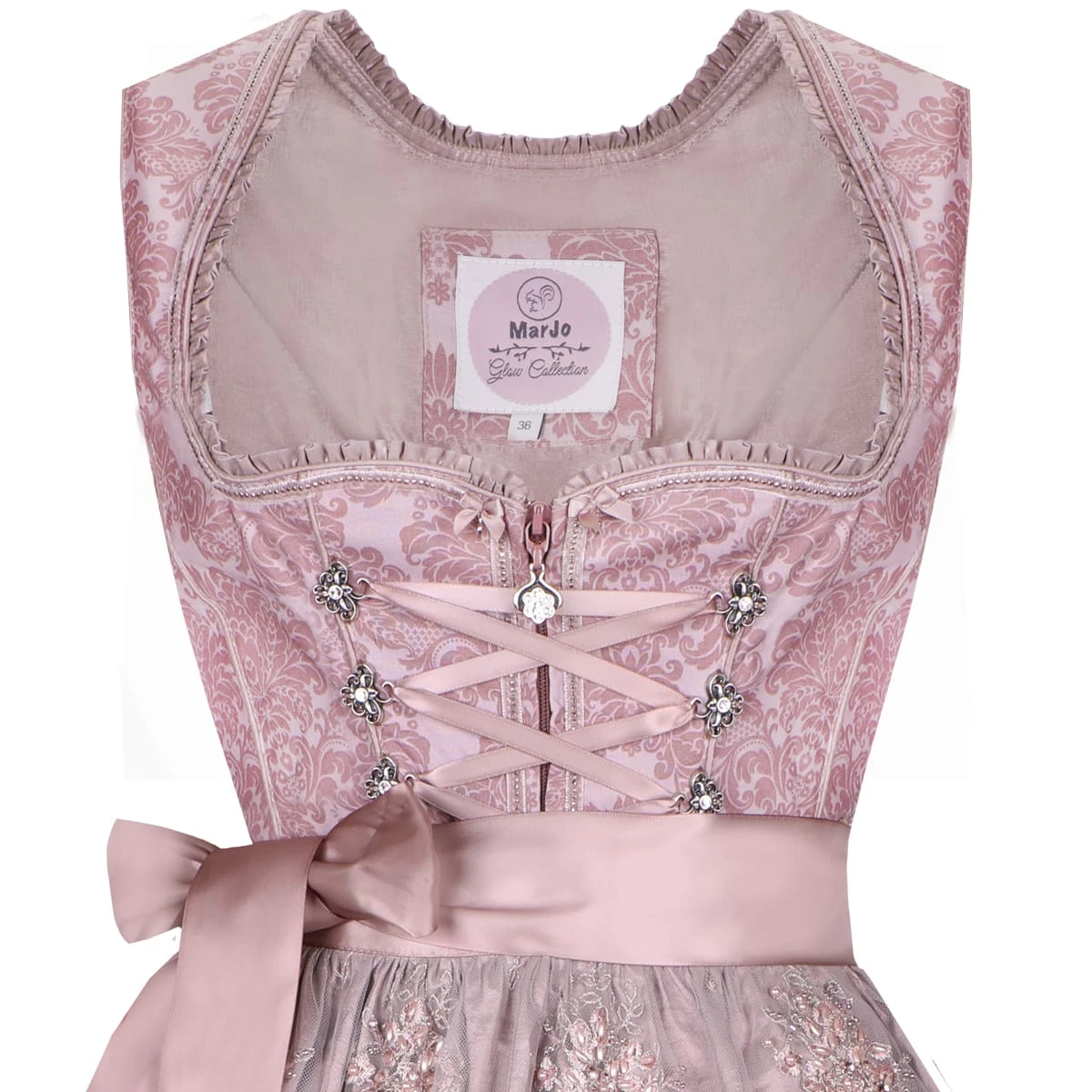 – Midi Dirndl für Damen von der Marke Marjo Trachten. Dieses Dirndl hat eine Länge von 58 cm. Der Herz-Ausschnitt wird von einer Borte aus Strasssteinen begleitet. Zudem besitzt der Reißverschluss auf der Vorderseite einen hübschen Anhänger.