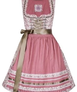 Ein hübsches Midi Dirndl Natalia in Rosa von Marjo Trachten. Das Dirndl mit Herzausschnitt wird auf der Vorderseite mit einem Reißverschluss verschlossen, dieser besitzt einen hübschen Anhänger und wird von der Schnürung verdeckt. Der Kragen und Ausschnitt wurden mit hübschen Borten geschmückt. Das gesamte Dirndlkleid schmückt sich mir einem floralen Muster. Die hübsche Schürze zeigt sich mit einem Pünktchenmuster und wurde mit aufwendigen Zierborten geschmückt. Der Trachtenrock misst eine Länge von 58cm.