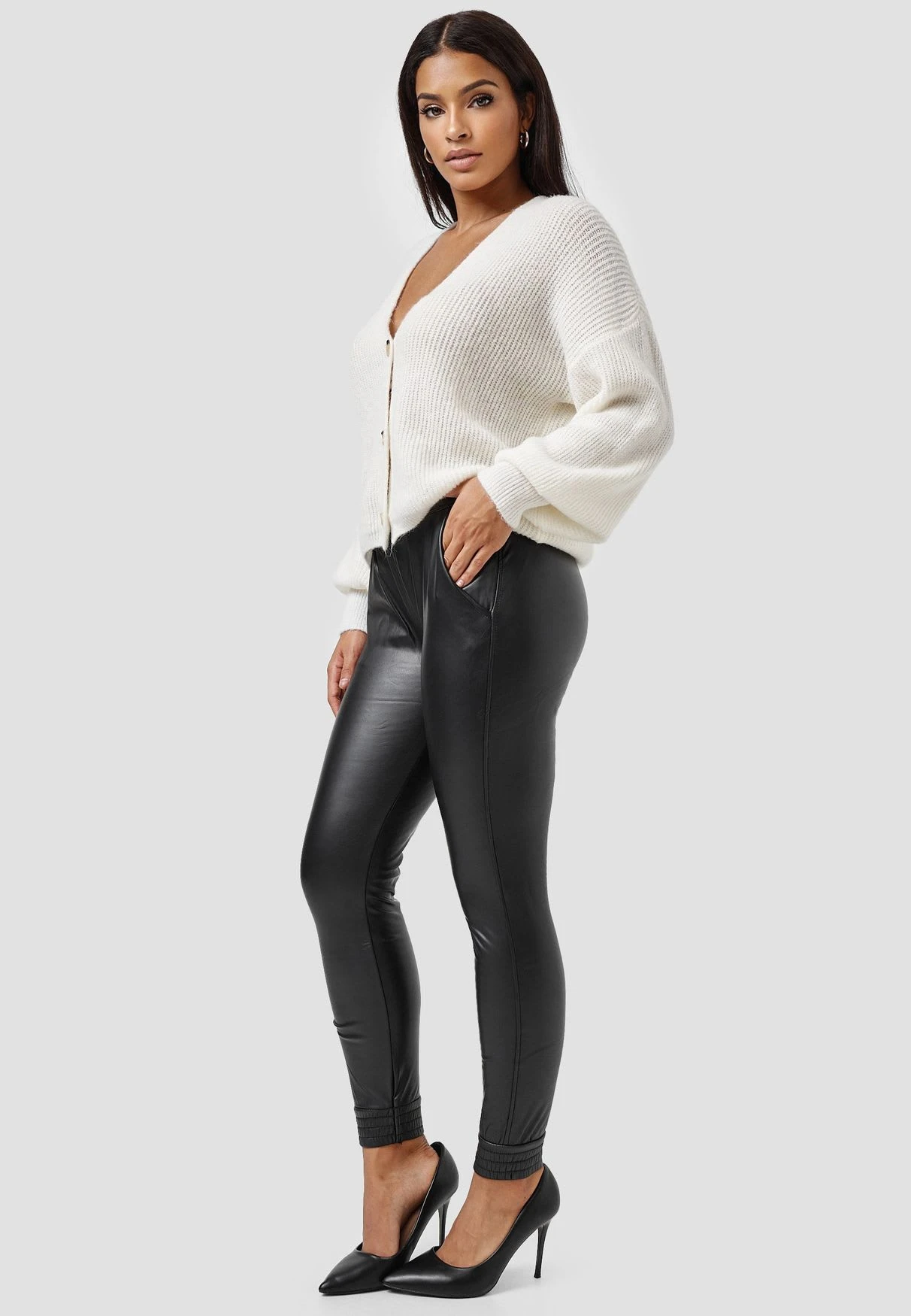 ………… Damen Leder Optik Stretch Jogginghose Beschichtet Coated Jogger Pants Gefüttert Biker Look …………| Artikel fällt normal aus. | Material: 50% Baumwolle, 45% PU, 5% Elasthan | Passform: slim fit | Verschluss: Gummizug 3723 | Pflegehinweis: 30°C Maschinenwäsche