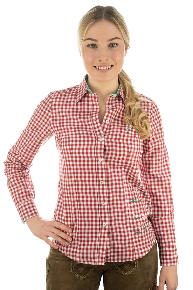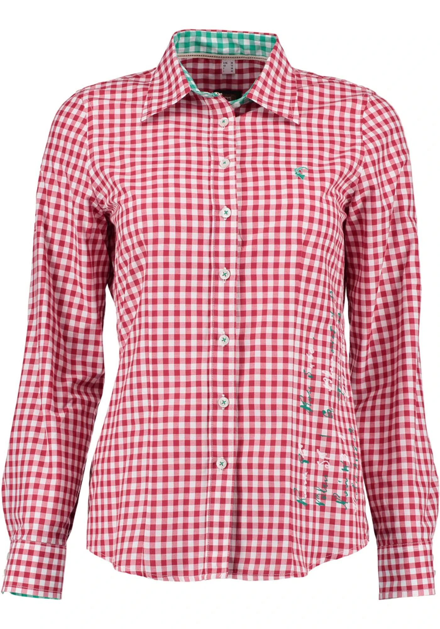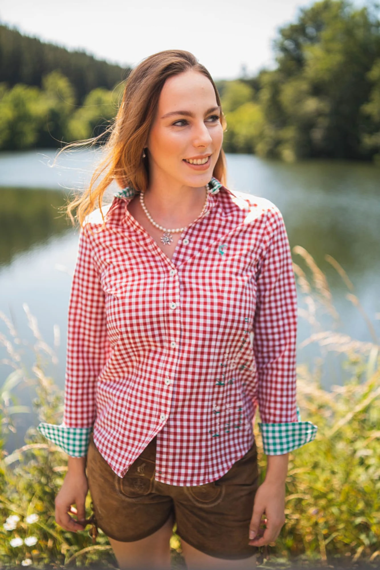 Diese besonders reichhaltig ausgestattete Bluse ist ein deutliches Bekenntnis zur Tracht. Der extrem aufwendige Steinbockstick auf der Rückenpartie prägt diese Wiesnbluse. Das ist moderne Tracht. Auch jetzt im Alltag kann sie ideal zur Jeans getragen werden und setzt markante alpine Akzente. Die gedruckten und gestickten Schriftzüge machen die Bluse jung und sportlich. Eine sehr aufwendige Bluse zu einem tollen Preis.