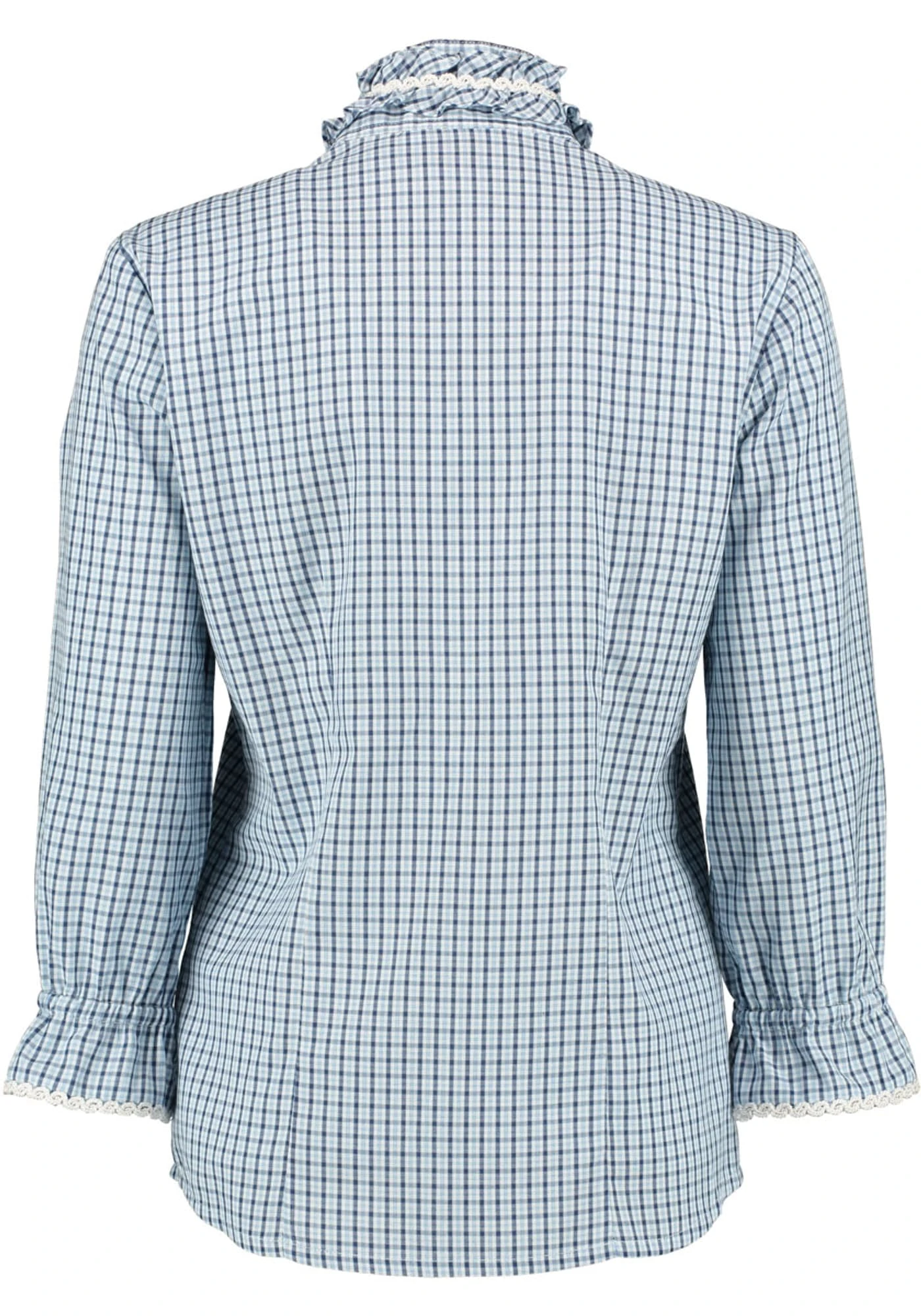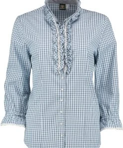 Eine typische Trachtenbluse von OS. Besonders fein ausgearbeitet Rüschenbluse mit einer Vichykontraststoffverarbeitung die den trachtigen Charakter dezent unterstreicht. Die modischen 7/8 Ärmel können durch den praktischen Gümmizug prima variiert werden. In Europa für Sie hergestellt.