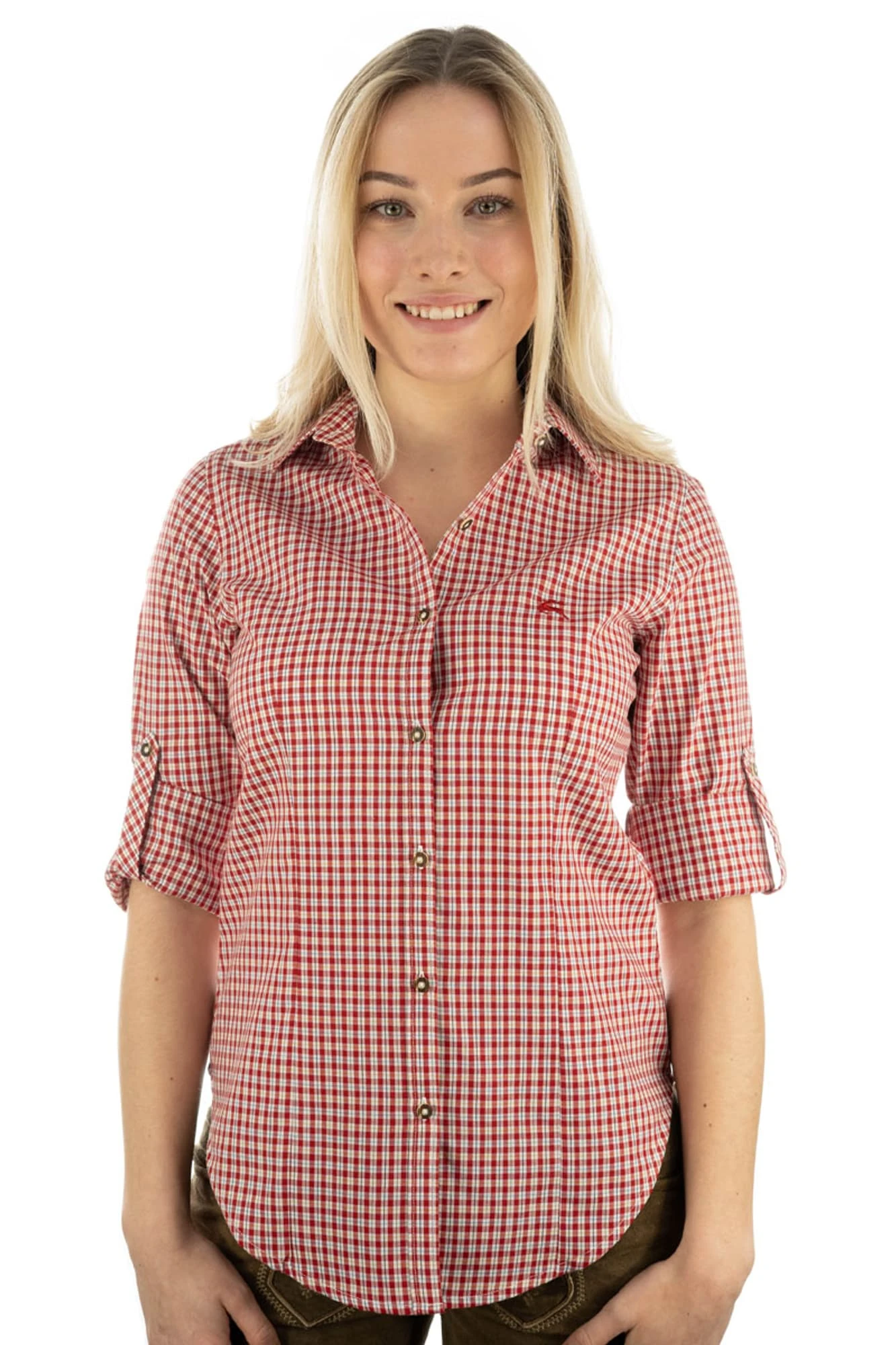 Die “OS-Trachtenbluse” mit dem typischen Trachtenkaro. Sehr sportiv in einer besonders gut zu pflegenden Baumwollware mit einem geringen Kunstfaseranteil hergestellt. Diese Stück muß somit nach dem Waschen kaum gebügelt zu werden.