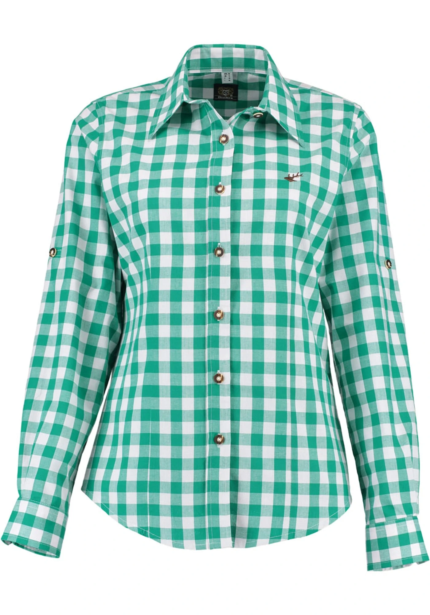 Die klassische Wiesnbluse von OS Trachten in diesem großen Karo überzeugt durch den pflegeleichten Mischgewebestoff, der viele Feste prima übersteht. Diese Basisbluse gehört zu jeder Trachtengrundausstattung. Ob zu Jeans oder zur Lederhose; sie sieht immer zünftig aus. Hirschhornimitatknöpfe.