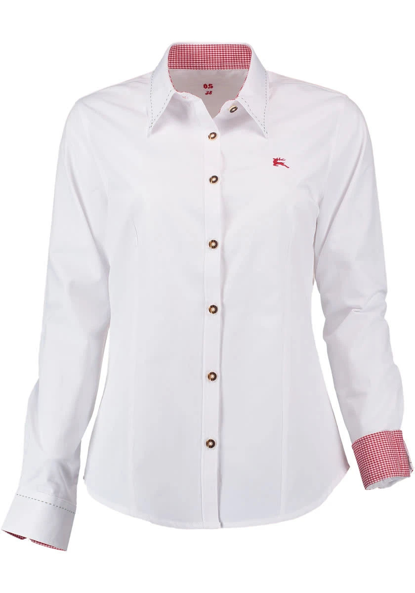 OS-Trachtenbluse aus einem richtig feinen Satinstoff. Der edle Glanz verleiht diesem Stück eine tolle festliche Optik. Die Ziersteppungen am Kragen und den Manschetten machen sie jung und modern. Täuschend echt immitierte Hirschhornknöpfe und der dynamische Hirschstick fügen sich in jedes Trachten-Outfit prefekt ein.