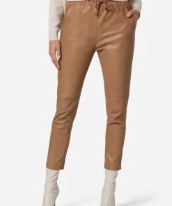 Lederhose Carillo in Taupe für Damen von Ricano® aus Lamm-Nappa Leder – Jogg-Pant – Regular Waist / Medium Rise – Femininer und figurbetonter Slim Fit – Futter: keine Fütterung – das exzellent gegerbte und aschmiegsame Leder trägt sich wie eine zweite Haut – hoher Tragekomofort – Ganzjahresartikel – von Frühling bis Winter zu jeder Jahreszeit passend – Größenausfall: Artikel fällt eine Nummer kleiner aus – Bitte eine Nummer größer wählen als gewohnt – Italienisches Fitting. Enthält nichttextile Bestandteile tierischen Ursprungs.