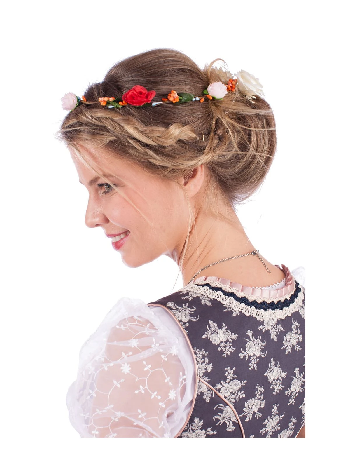 Mit edlem Blumen-Haarkranz zum perfekt abgerundeten Outfit. Dieses Accessoire ergänzt jedes Outfit um einen fröhlichen und dennoch dezenten Hingucker. Die bunten Blüten setzen sich verspielt von schlichten oder auch aufwendigen Frisuren ab und passen zu Kleidung in jeglicher Farbe. Der Blumen-Haarkranz besteht aus Metall und hat einen Durchmesser von etwa 19 Zentimetern.•Haarschmuck •Haarkranz •Schuhmacher