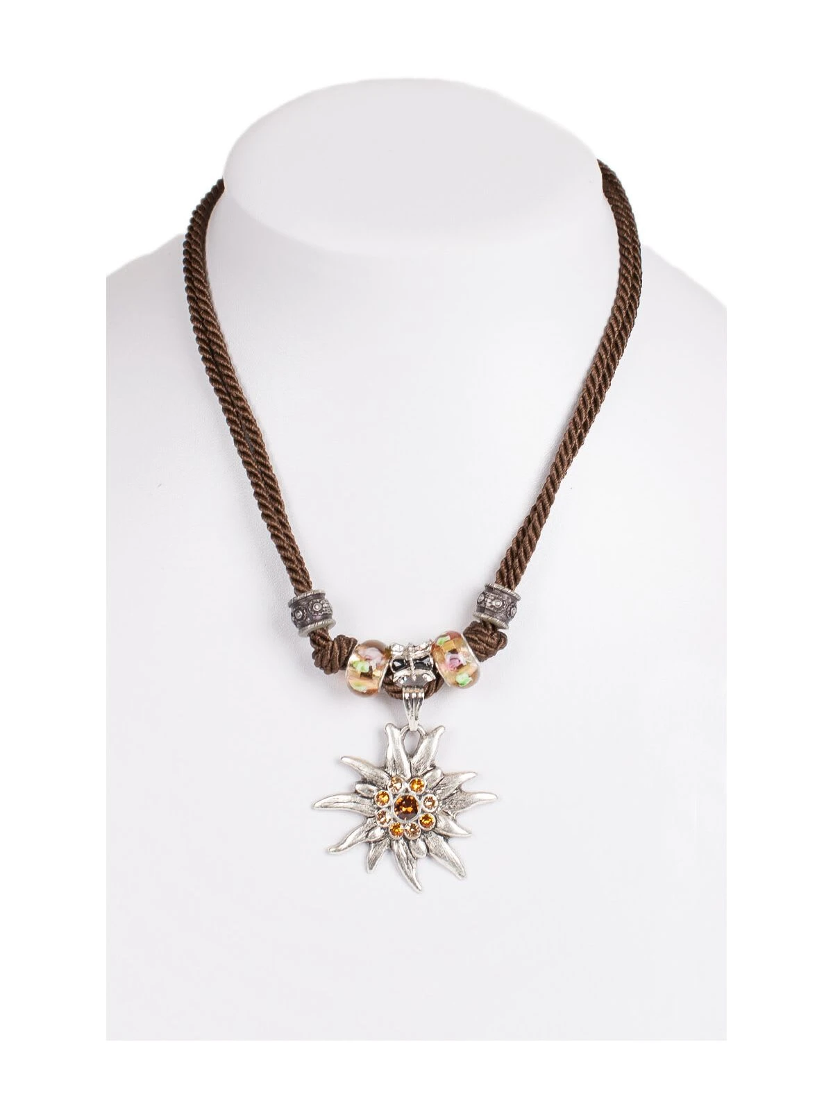 Natürlich schön mit der zweifachen Kordel-Kette und Edelweiß. Edelweiß gehört gleichermaßen zu Bergen und zur Schönheit. Kein Wunder also, dass die Kette mit zweifacher Kordel und Edelweiß bei Frauen so beliebt ist. Getragen wird die schlichte Naturschönheit zu allen Anlässen – zum Beispiel im Alltag, im Büro, auf Events und im Urlaub. Das Kordelband eignet sich zudem für Allergikerinnen.•Kordelband. Länge verstellbar von 42 – 47 cm.