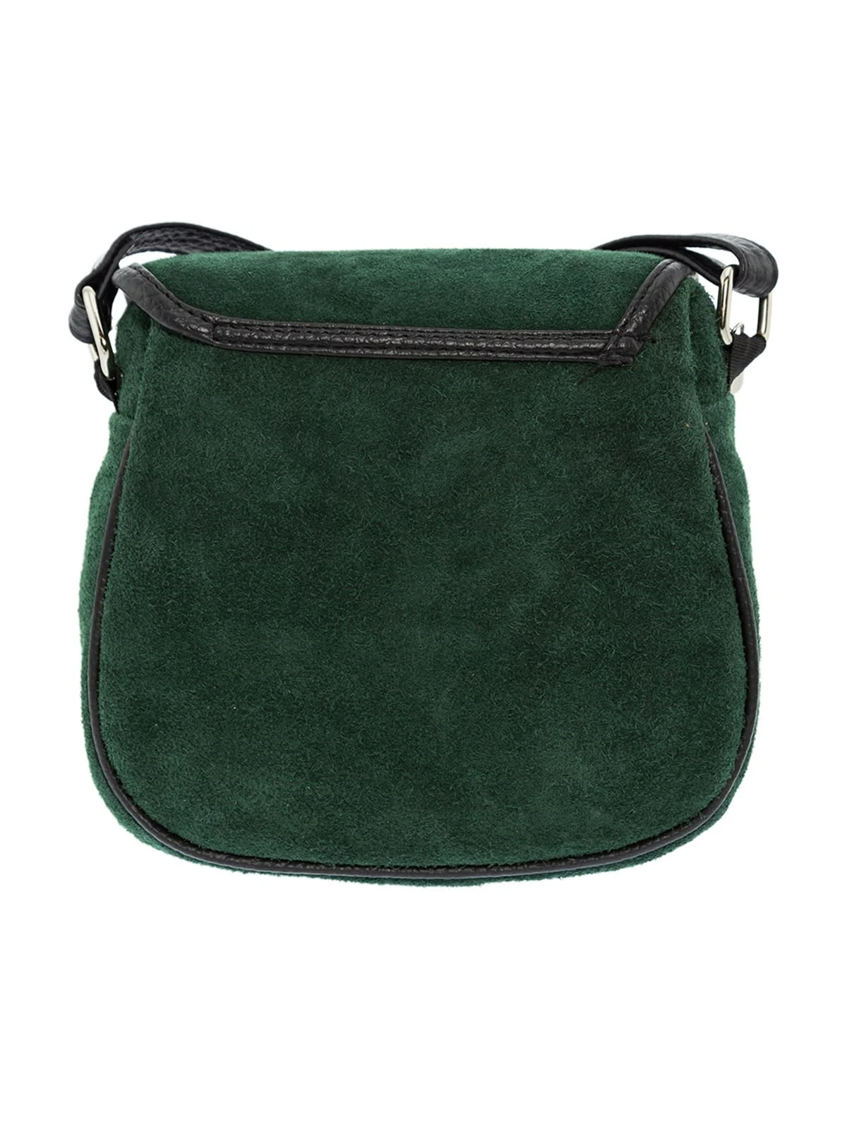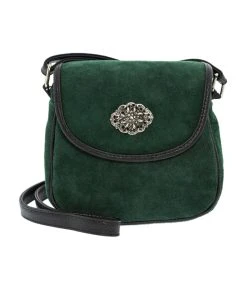 Graziles Damen Accessoire mit Umhängeriemen aus Veloursleder. Die Schuhmacher Trachtentasche aus Veloursleder im Farbton Tanne krönt den erlesenen Style traditionsbewusster Trachtenträgerinnen. Blickfang bildet ein metallenes Zierelement, welches im alpinen Edelweißdesign den femininen Trachtenlook stilvollendet ergänzt. Ebenso geschmackvoll sticht die harmonisch nuancierte Paspelierung aus Glattleder hervor. Unverzichtbare Sicherheit bieten zwei Verschlussmechanismen.•Tasche •Tracht •Wildleder, ca. 20 x 18 x 6 cm, Schulterriemen 1,39 m verstellbar