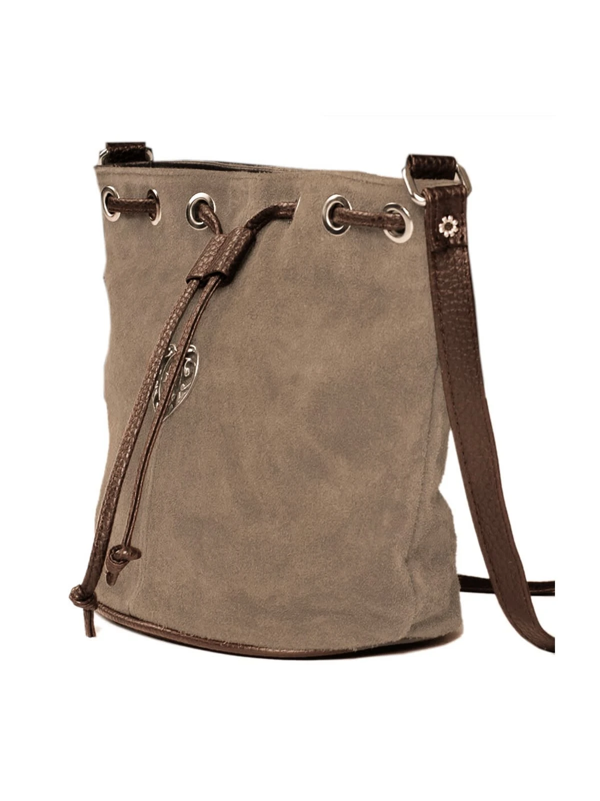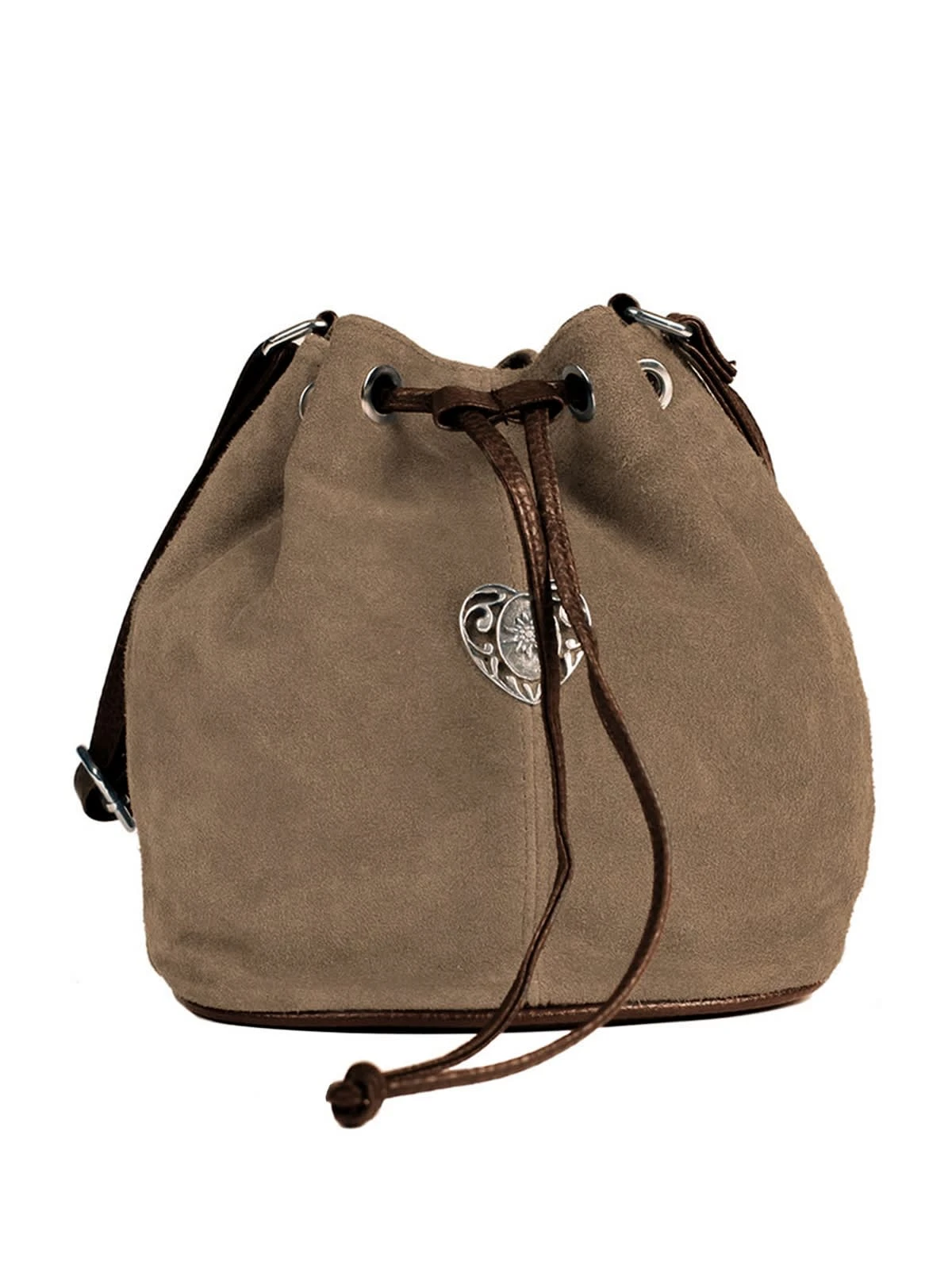 Herziger Beutel mit viel Stauraum. Der Wildlederbeutel mit appliziertem Herz überzeugt nicht nur mit der gewohnt hohen Qualität der Produkte von Schuhmacher, sondern auch mit seinem schönen Design und der neutralen Farbe. Das kleine Platzwunder kann in den unterschiedlichsten Situationen eingesetzt werden, denn das Grau-Braun passt zu verschiedenen Trachten und vielen Accessoires.•Beutel •Tracht •Wildleder, ca. 27 x 22 x 14 cm, Schulterriemen 1,50 m verstellbar/ Druckknopfverschluss, 1 Reißversc