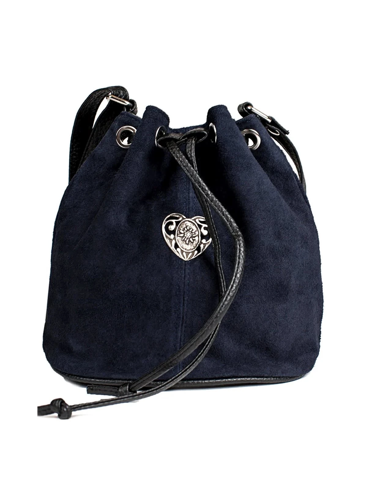 Dieses Accessoire kann man immer gut gebrauchen. Richtig schick kommt der Wildlederbeutel mit Metallherz im Farbton Marine daher. Er sollte beim Oktoberfest-Outfit keinesfalls fehlen. Schlüssel, Handy und Geldbörse sowie andere Utensilien haben in diesem Beutel genügend Platz. Als besonderes Highlight wurden in den Artikel Ösen und ein Metallherz eingearbeitet. Verstellbare Schulterriemen sorgen für einen angenehmen Tragekomfort.•Beutel •Tracht •Wildleder, ca. 27 x 22 x 14 cm, Schulterriemen 1,50 m verstellbar/ Druckknopfverschluss, 1 Reißversc