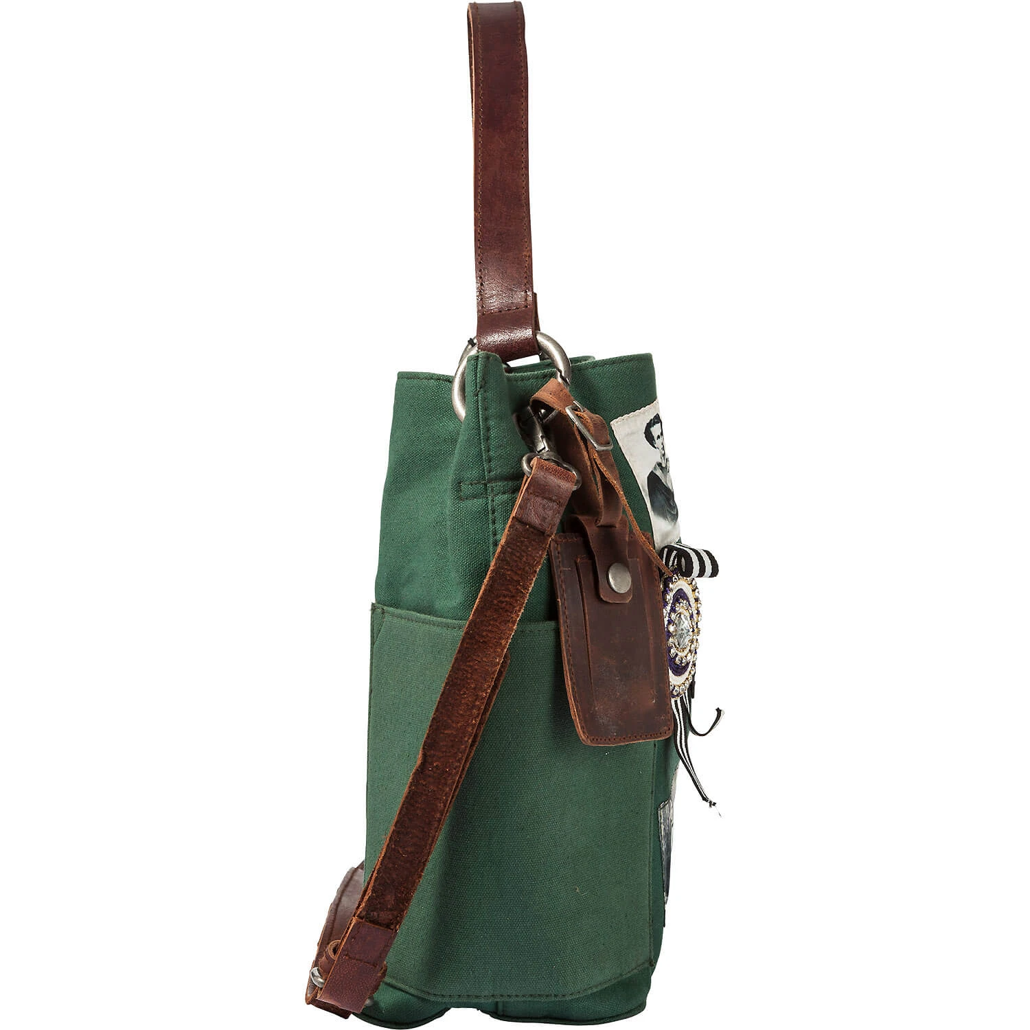 – Ein Lederhenkel mit dicken Metallringen und Ösen befestigt und ein zusätzlicher verstellbarer Schulterriemen aus Leder zum abnehmen, Machen die Tasche zu einem praktischen Begleiter
